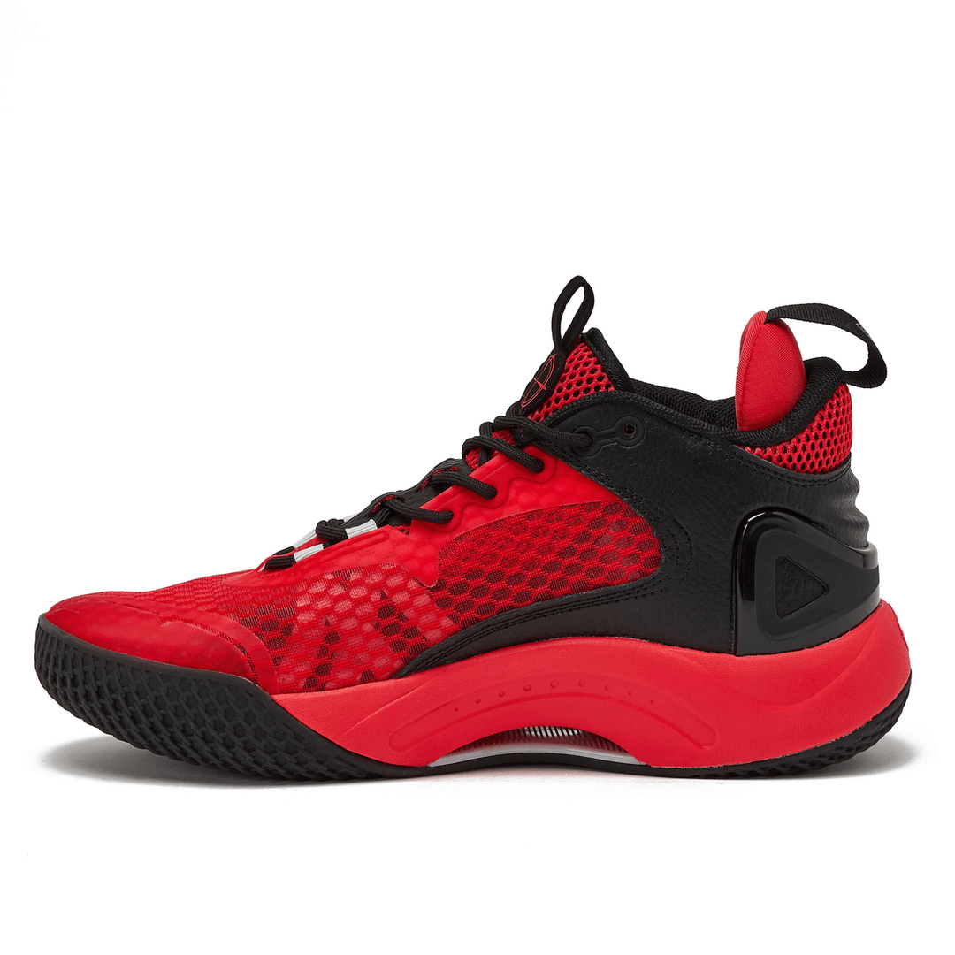 The And1 Scope Red/Black is crafted for shooting guards and point guards who demand performance. Its innovative design features strategically reinforced TPU no-sew elements that enhance durability and style. The patent-pending chain-link tread design on the rubber outsole guarantees unmatched traction, keeping you on target with every move.